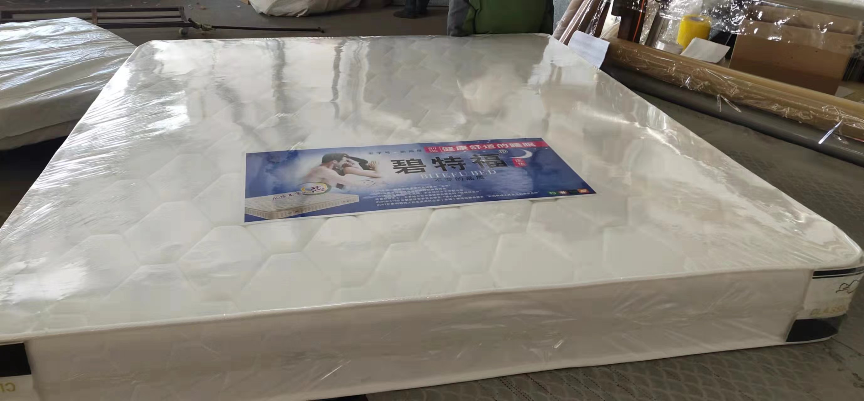 我廠還有自己獨立的床墊品牌,比特福,美迪麗,生產13種床墊,特尺加工。同時為了方便于每個客戶的需求,我們還代銷床墊輔料,裥花面料,各式花樣。